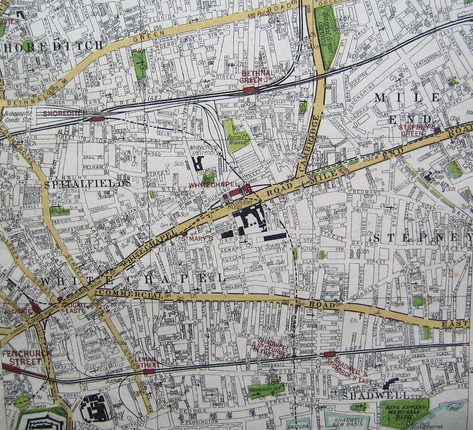 a parade of shops on the Commercial Road in Stepney Green. But step